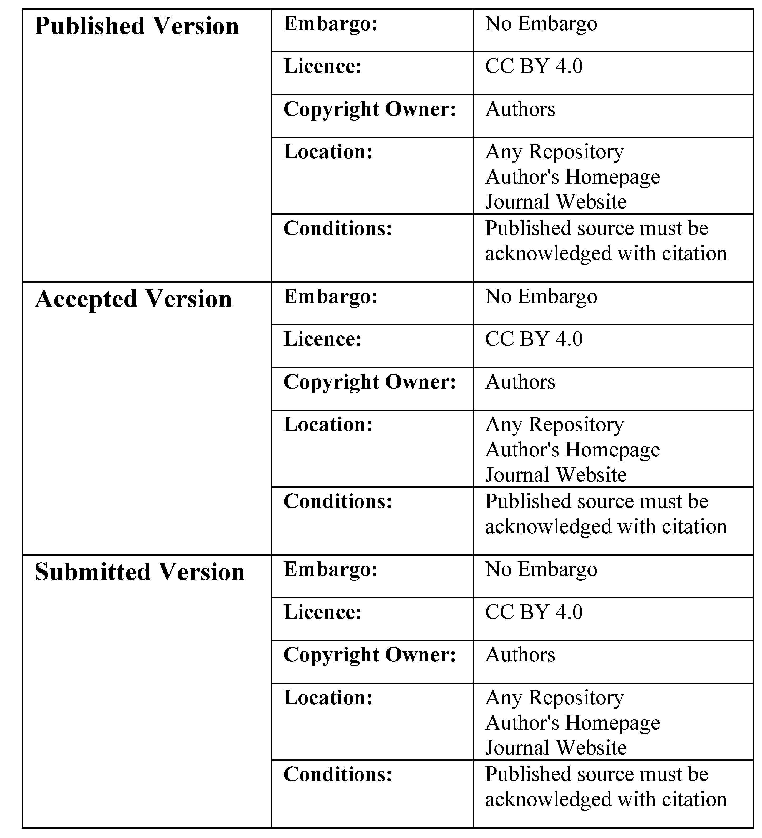 Lentera Demokrasi: Jurnal Ilmu Sosial, Politik, Hukum, Ekonomi dan Pemerintahan has a policy that allows authors to submit all versions of their articles to any repository they choose. The open-access options allowed by the journal's policy are listed below based on the version of the article:
